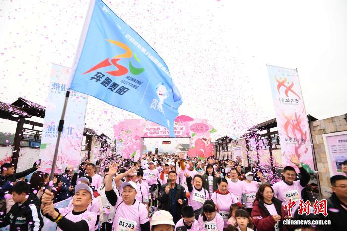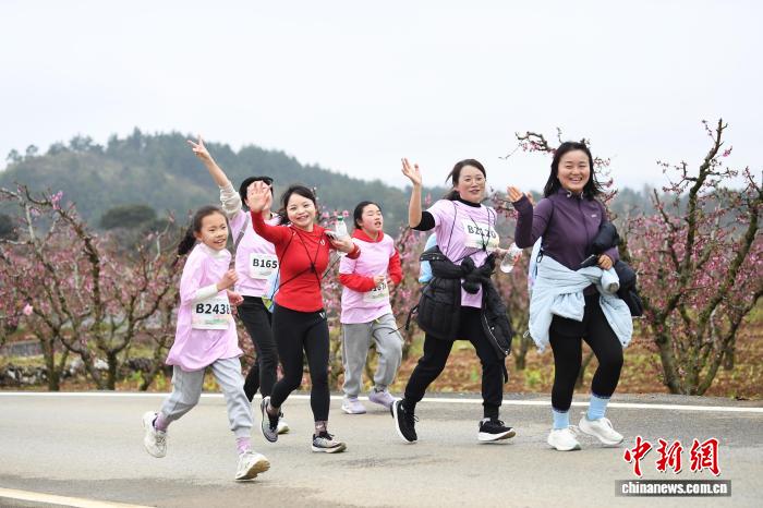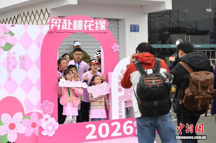 图为3月21日,跑步喜好者正在“奔走贵阳·2026第8届北亮永乐桃花平地跑”举动现场摄影挨卡。赵紧 摄